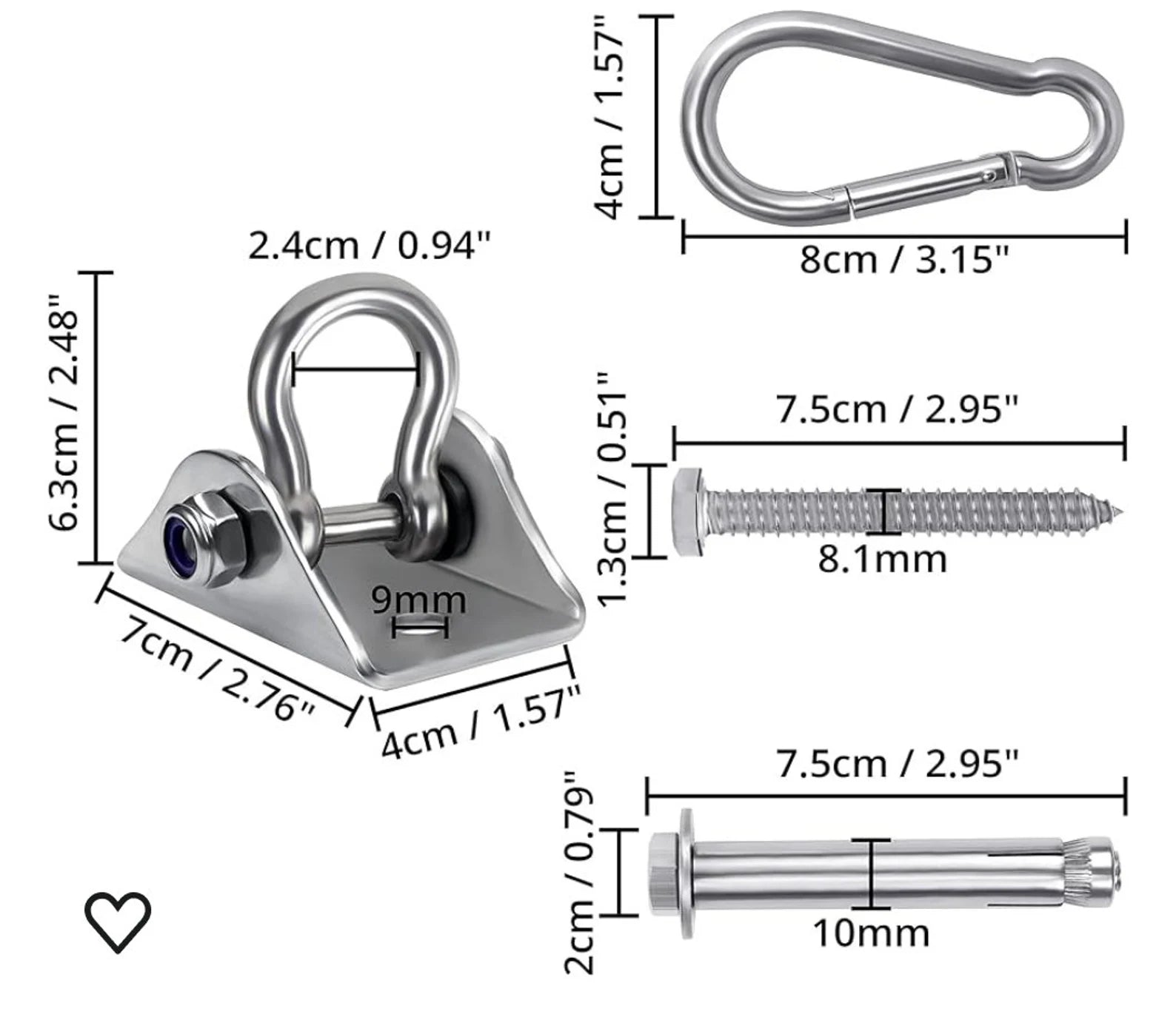 This stainless steel ceiling/wall mount is designed for securely hanging swings, hammocks, and other heavy suspension equipment. Built for durability and stability, it can hold up to 200kg (440 lbs), making it ideal for both indoor and outdoor use.